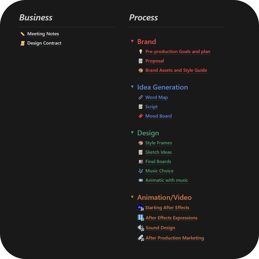 I've developed my process system that evolves with new knowledge and experience. I organize multiple projects efficiently using Notion, Frame.io, Todoist, and CRM's. While I leverage AI to streamline workflows, I prioritize the human element and authenticity that audiences connect with in today's digital landscape.